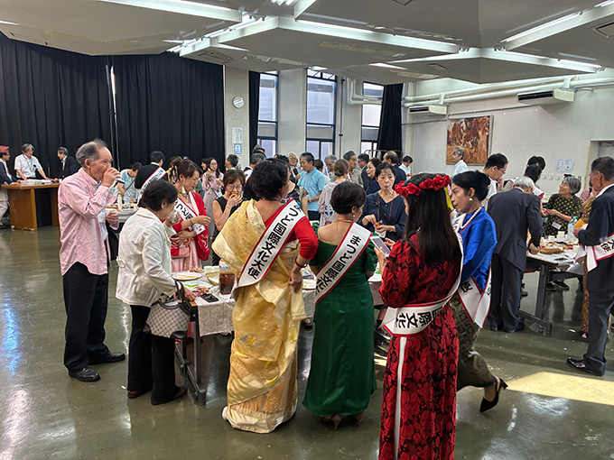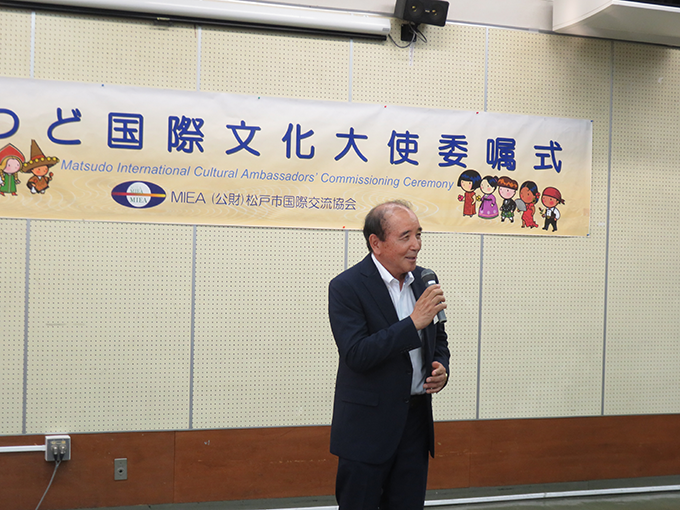 来賓の松戸市長他、協会役員、一般観覧者や大使のご家族の方々が参加し、会場は賑やかな雰囲気となりました。松戸市長はご挨拶の中で、大使たちのこれからの活躍に大いに期待していることと、松戸市がさらに国際色豊かな地域となるよう、多文化共生を推進していきたいと述べられました。