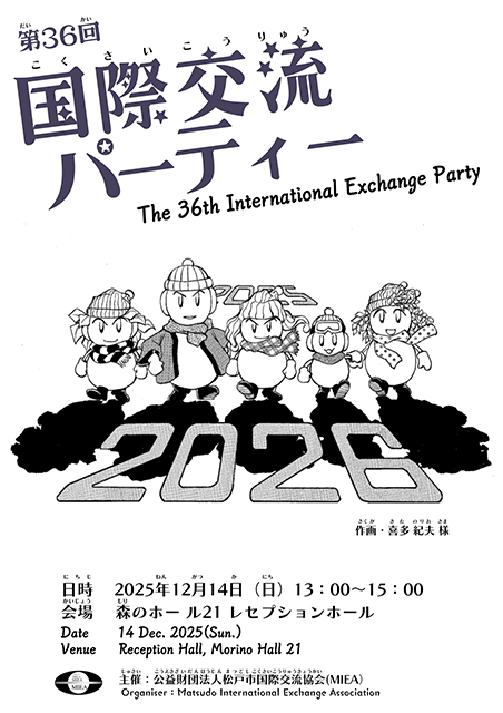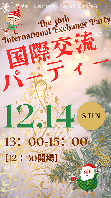 2025年12月14日(日)に毎年恒例の第36回国際交流パーティーを開催しました。外国人と日本人がパーティーを通して国際交流を楽しんでいただきました。